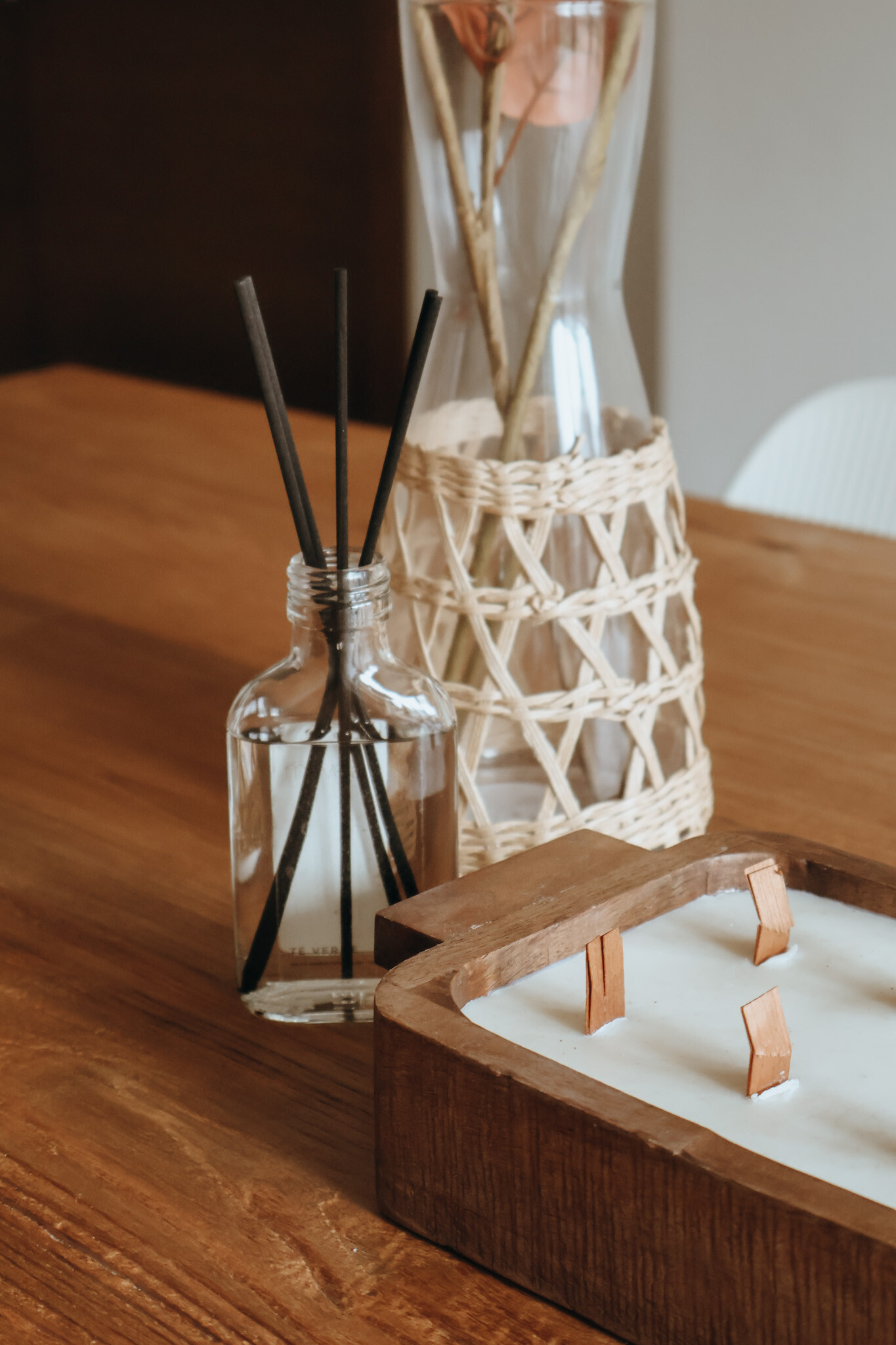 Coloca las varillas de ratán en el frasco en forma de abanico para permitir una difusión óptima del aroma.